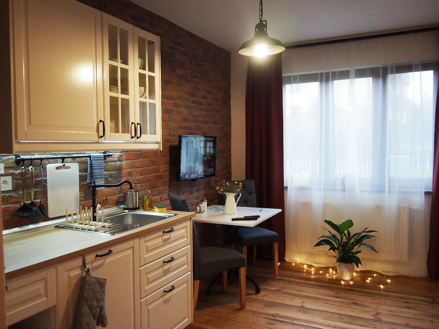 Pokoj se nachází v prvním patře. Také zde se budete probouzet při pohledu na kopce Pusteven. Pokoj má vlastní kuchyňský kout, koupelnu a WC. V pokoji vyniká cihlová zeď a mile Vás překvapí i výhled během koupele, který se přímo nabízí.
